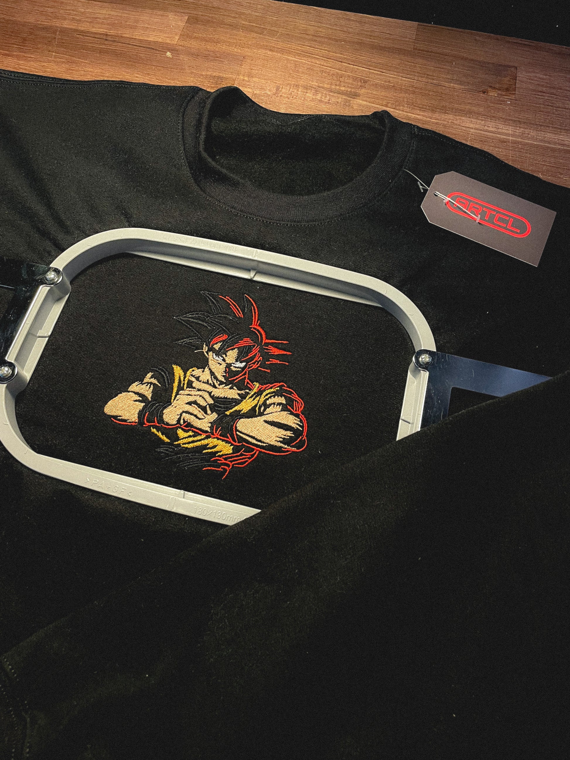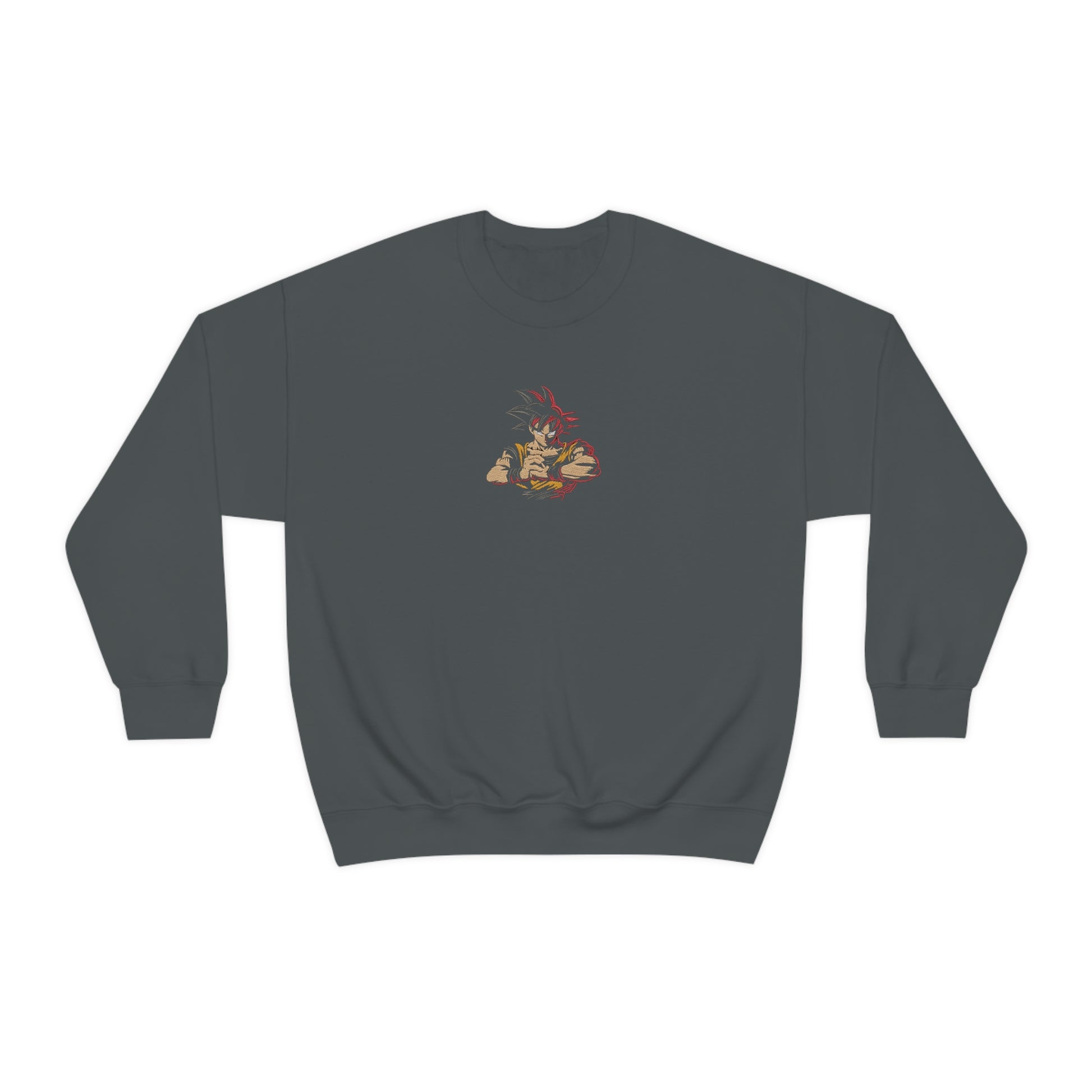 Comfy Crewneck with custom embroidered Goku inspired graphic.