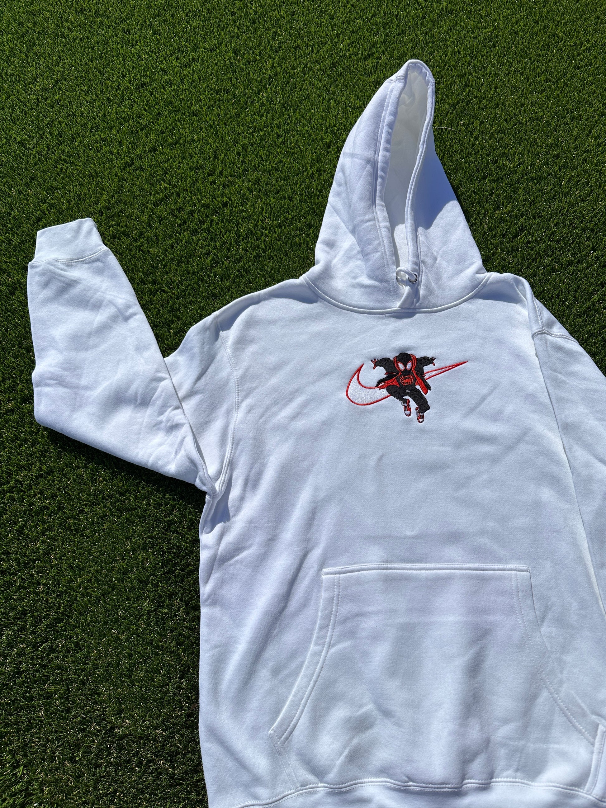 Custom crewneck with Miles Morales swoosh inspired Embroidery